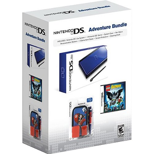Bundle Includes: Nintendo DS Lite system - Cobalt/Black, LEGO Batman: The Videogame DS game, Carrying Case (featuring Mario), Mario Expressions Kit, 1 Large DS Stylus, 2 Game Card Covers, 1 Screen Protector, 1 Cleaning Cloth.